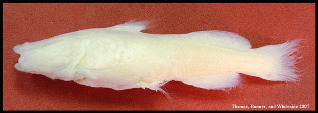 The closest non cavefish relative of the widemouth blindcat is the flathead catfish, who some reader may remember was written about last month. in comparison to them, we can see many other changes that have taken place in the blindcat. Such as: a cartilaginous skull, and ossifying skeleton system, hugely reduced swim bladder, broken up lateral line, and other traits that are common in juvenile catfishes. This is due to a phenomena called Neoteny, or juvenilization, where traits common in young are retained by sexually mature adults, a phenomena common in cavefishes. Also differing from their closest relative (as flatheads get a size of 70 inches) the blindcat gets as large as 6 inches total, which is pretty large for most cavefish! Many other essential information on the widemouth blindcat is currently unknown. We lack an understanding of spawning season, location, reproductive strategy, migration, age of maturation, longevity, or growth rates. Leaving us many mysteries to uncover in the future of our understanding on not just the widemouth blindcat, but cavefish themselves.