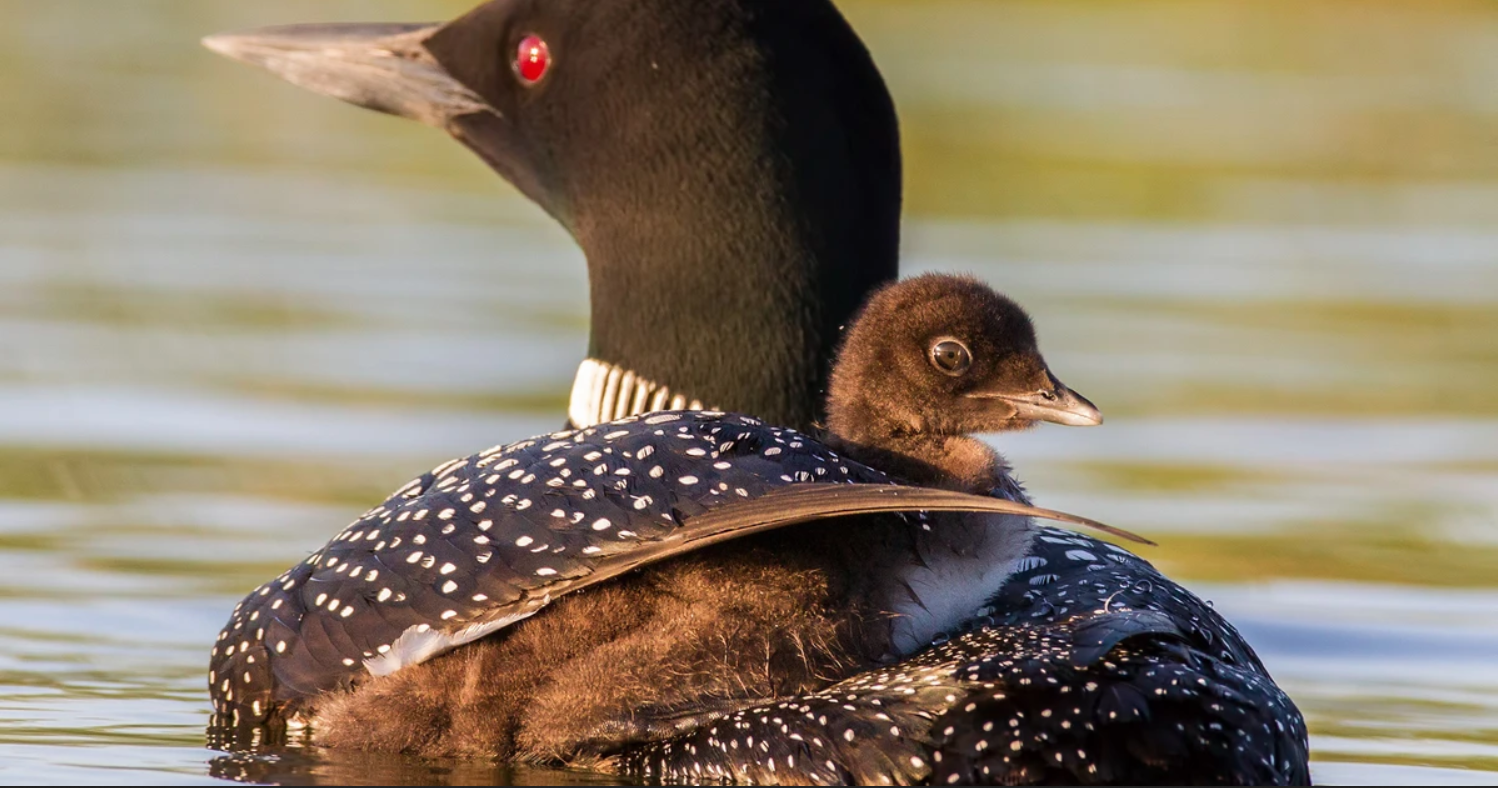 Common loons are monogamous, and will breed together over multiple breeding seasons, defending over a small or large lake is entirely their territory, which they will chase possible predators and other water birds out of. Only one or two eggs are laid in a season, and the eggs can be anything between pale-brown in coloration with darker spots. incubation of the eggs is 16-70 days in length, and nests are hidden along the lake edge in long grasses, in a quiet area. If a partner dies during a breeding season, the living parent will find another common loon of either sex who is unmated and raise chicks with them. Then after hatching, the chicks will swim nearby or ride along their parents backs, and will begin flying at 11-12 weeks after hatching. After migrating, juveniles and adults no longer interact, and the breeding adults will return to the same territory they claimed the year before. During the breeding summer, non-breeding loons will exist in groups along unoccupied lakes or other water sources. Maternity occurs at around 6 years of age, and this is when loons begin breeding, with an estimated lifespan of around 30 years in total.