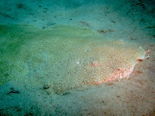 The Australian angelshark, known by scientific name Squatina australis, is a common coastal shark in Australia. The range of this shark stretches across the continental shelf of Southern Australia, from Western Australia to New South Wales. Living along the seabed, it survives at depths of 130-255 meters, or 430-840ft. This is where this shark will live on muddy or sandy seabed, which it uses to disguise itself, or seagrass beds, nearby rocky reefs where it will hunt.