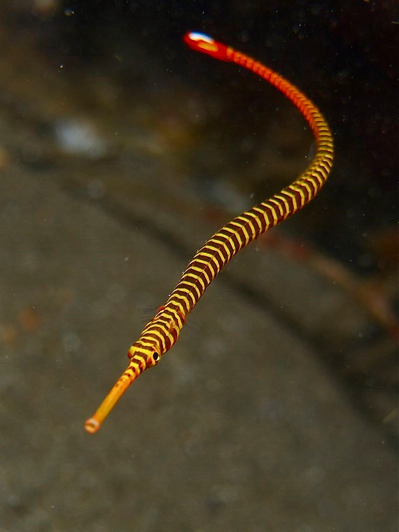 The yellowbanded pipefish, also known by scientific name Dunckerocampus pessuliferus, and synonym Doryrhamphus pessuliferus, is a rather unknown pipefish, primarily understood by the populations kept in captivity as pets in the aquarium trade. In the wild their range stretches across the tropical west Pacific. Living within the Coral Triangle, this fish can be found from the Matebello islands and Western Australia, across the Philippines, they can be found living alone inshore reefs along sandy or muddy bottomed areas. They prefer areas with little pressure, so they can be found around 44m of depth, and although they are purely saltwater fish, they can be found along shallow estuaries.