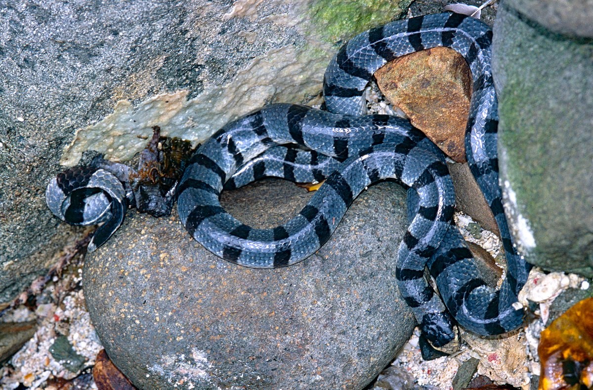 The yellow lipped sea krait also called the banded sea krait, or colubrine sea krait, scientific name Laticauda colubrina, is a well known aquatic snake. The range of the yellow banded sea krait is throughout the Indian Ocean and Western Pacific. To be more specific, along the eastern coast of India and then stretching the coasts of the bay of Bengal to all other Southeastern Asian countries with a coast, including as far as Fiji. Although they are not native to Australia or New Zealand, several populations have been found across their coastlines.