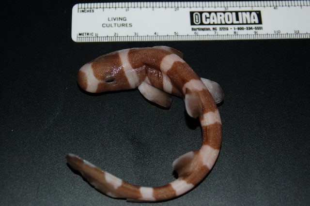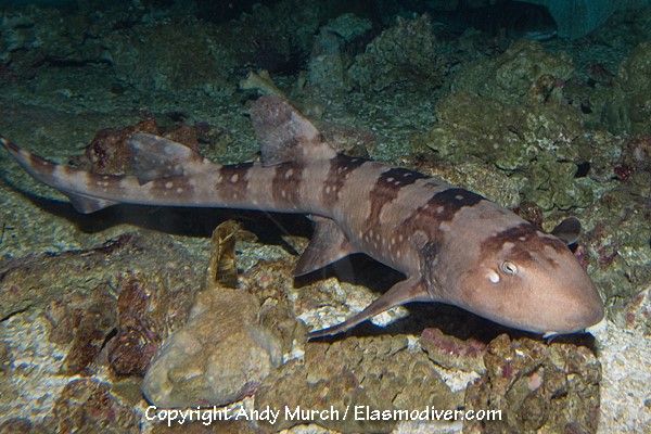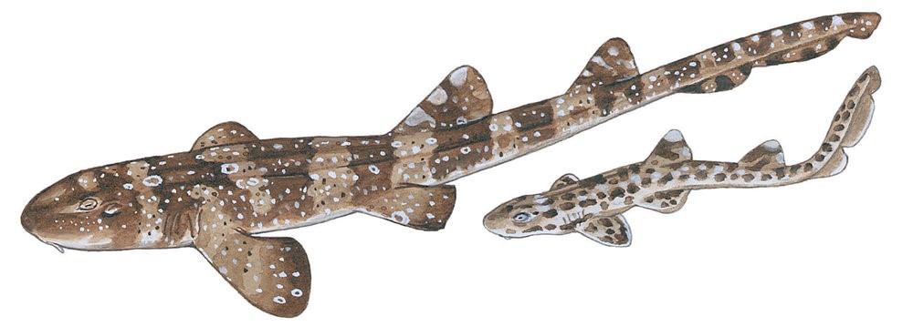 The whitespotted bamboo shark, known by scientific name Chiloscyllium plagiosum is an average carpet shark. With a range across the Indo-Pacific ocean, from Japan to India living in and around coral reefs, close to the shore. They can stretch as far as the coast of madagascar, but most populations are focused around Southeastern Asia at depths from 0-50 meters deep. The coloration of the whitespotted bamboo shark is unique among carpet sharks, and other sharks in the area making it easy to identify when found. Like other carpet sharks, this shark contains 5 gills, and 2 distinct dorsal fins, allowing a wider range of movement.
