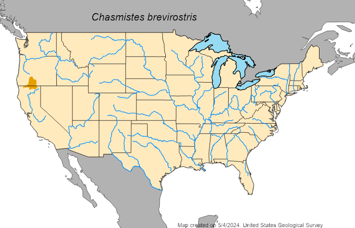 The shortnose sucker, Chasmistes brevirostris, is a rare and endangered species in Oregon. Living in the East Cascades in Southern Oregon and Northern California, it can be found primarily in the tributaries of the Upper Klamath Lake, the Lost River, Clear Lake, the Klamath River, and Gerber Reservoir. These are the only remaining areas where these fish can be found, a small area of their original historic range. This historic range also contained Tule Lake, Lower Klamath Lake, Sheepy Lake, and surrounding rivers and streams that branch from these. Their diet consists of small benthic (bottom dwelling) invertebrates and zooplankton in their environment, supporting them to sizes of 40-50cm (16-20 inches).